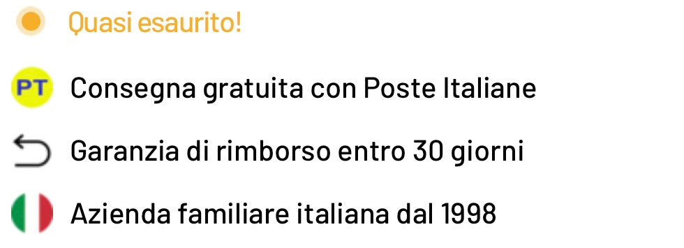 Vogliamo offrirti il massimo risparmio, quindi la spedizione è a carico nostro! Il tuo ordine verrà elaborato e affidato al corriere entro 24-48 ore. Non appena sarà spedito, riceverai un’email con il codice di tracciamento per monitorare il tuo pacco in ogni momento!